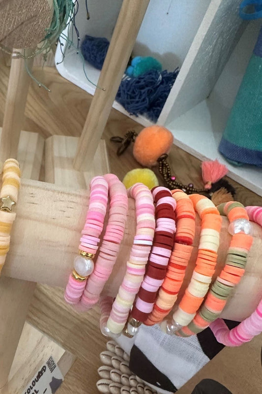 Polymer Clay Bead bracelet with Freshwater Pearl