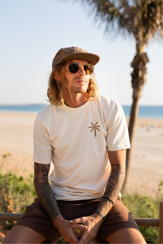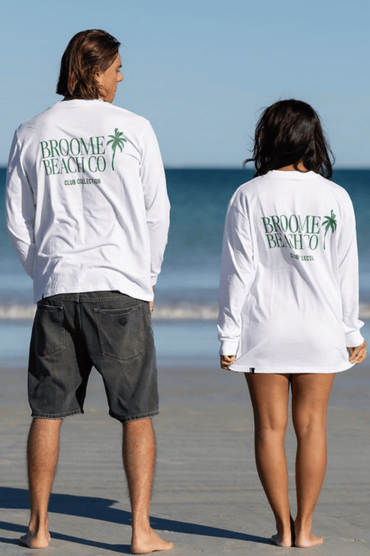Club Palm Long Sleeve Tee - Grey/Sky Blue