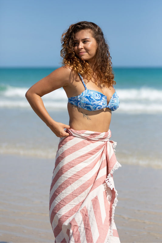 Premium Broome Beach Turkish Towel - Clay Nautical Stripes