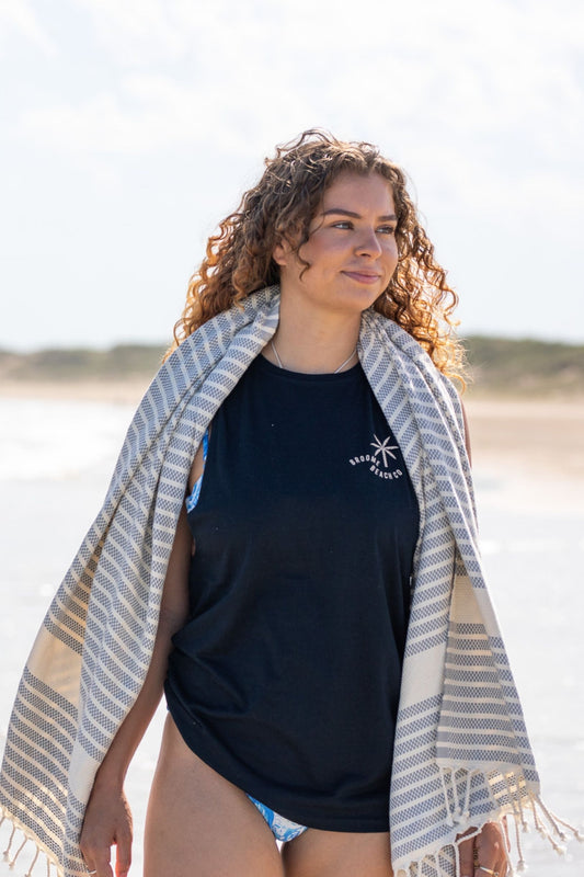 Premium Broome Beach Turkish Towel - Navy shells