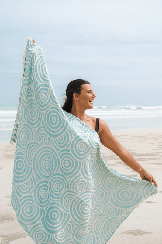Premium Raised Pattern Broome Beach Turkish Towel - Aqua Circles