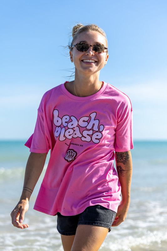 Ladies Beach Please - Hot Pink Box Tee